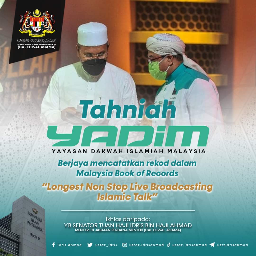 تويتر Ustaz Idris Ahmad على تويتر Penganjuran Program Tazkirah 24 Jam Yadim Telah Diiktiraf Sebagai Longest Non Stop Live Broadcasting Islamic Talk Program Ini Membedah Buku Sirah Nabawiyah Daripada Kitab Terkenal